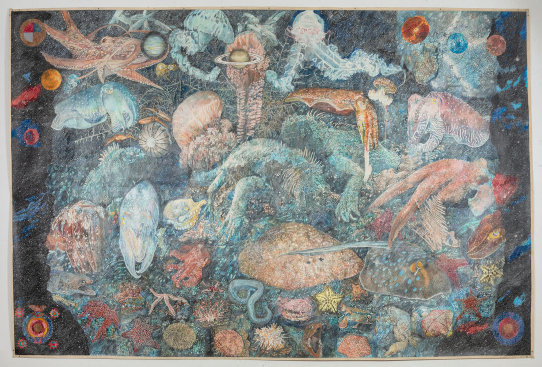 There is a myth call the Night Sea Journey, the most popular being Jonah and the whale.  The hero is swallowed, and taken to the bottom of the sea.  He frees himself by lighting a fire, and emerges transformed by the experience.  I had a dream in which I was on an island and floating in a black sea in the dark.  Sea turtles and scientists were guiding me through the waters showing me the beauty of the sea at night.  The week I returned to New York from Berlin, I got a grant to go to Australia.  There I did my first night diving, and the Night Sea Series began.