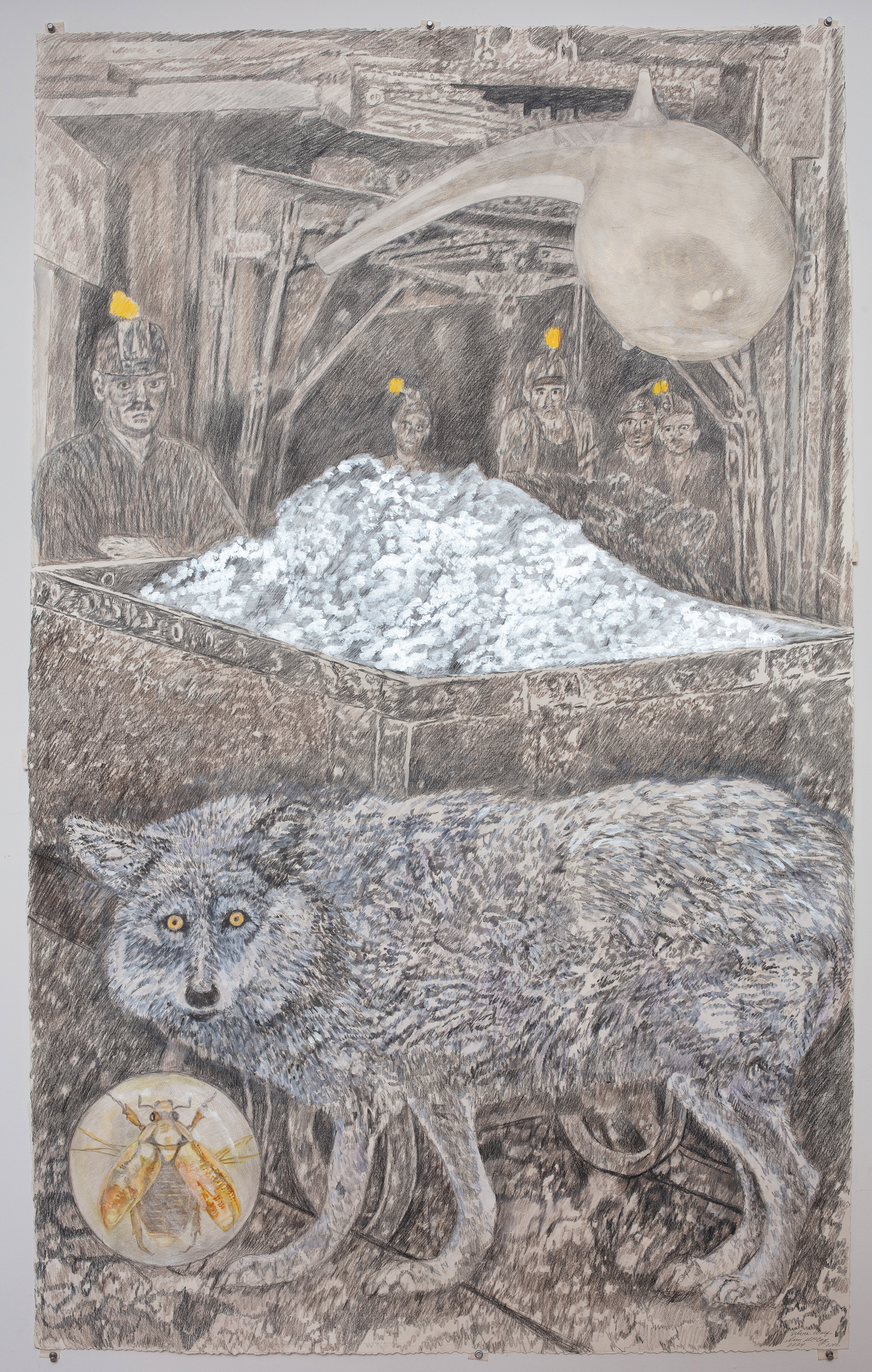 Silver Mine Wolf Published on March 2, 2026 in ProjectsFull resolution (5230 × 8223) Silver Mine Wolf 2024 66 ½ inches by 40 ¾ inches Pencil and metallic paint on Arches paper
